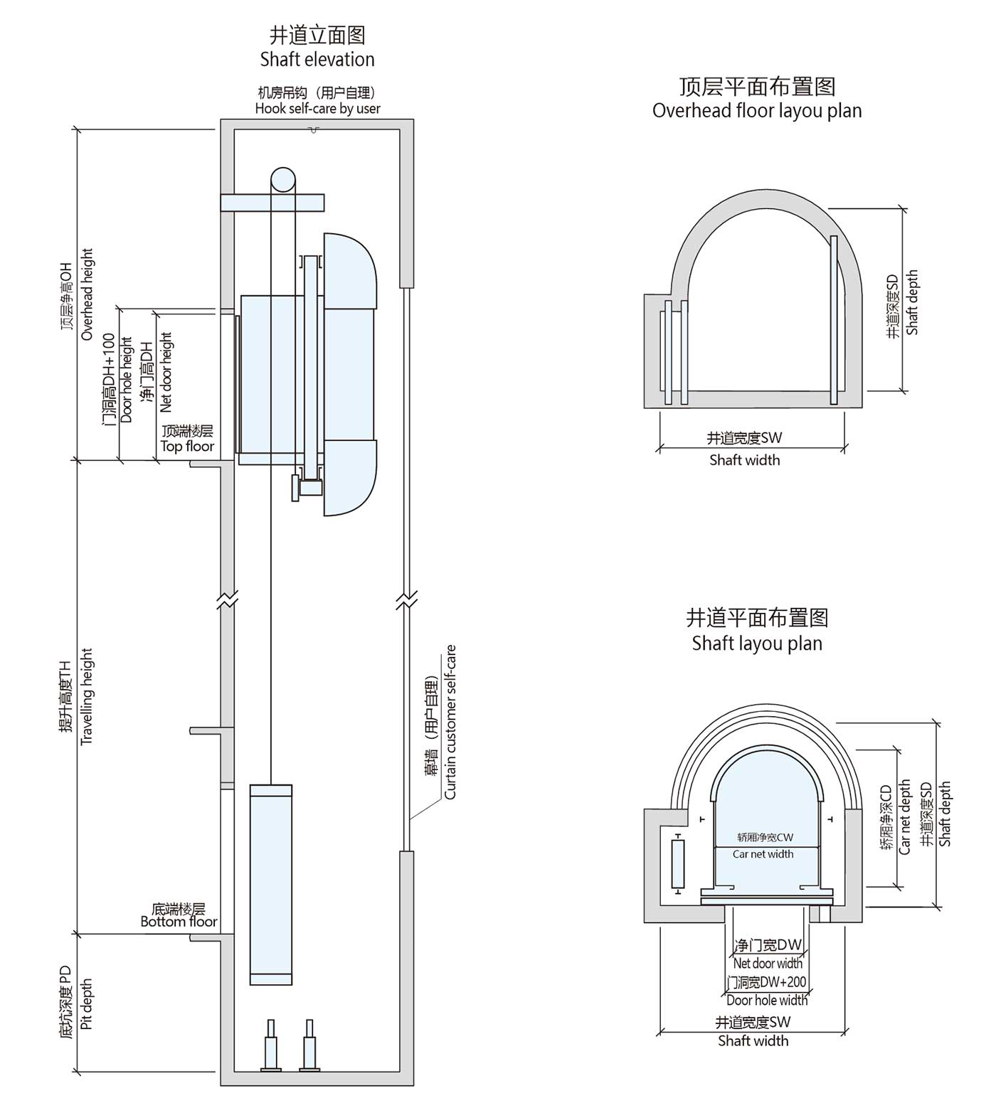 井道凈尺寸(mm) Hoistway size |