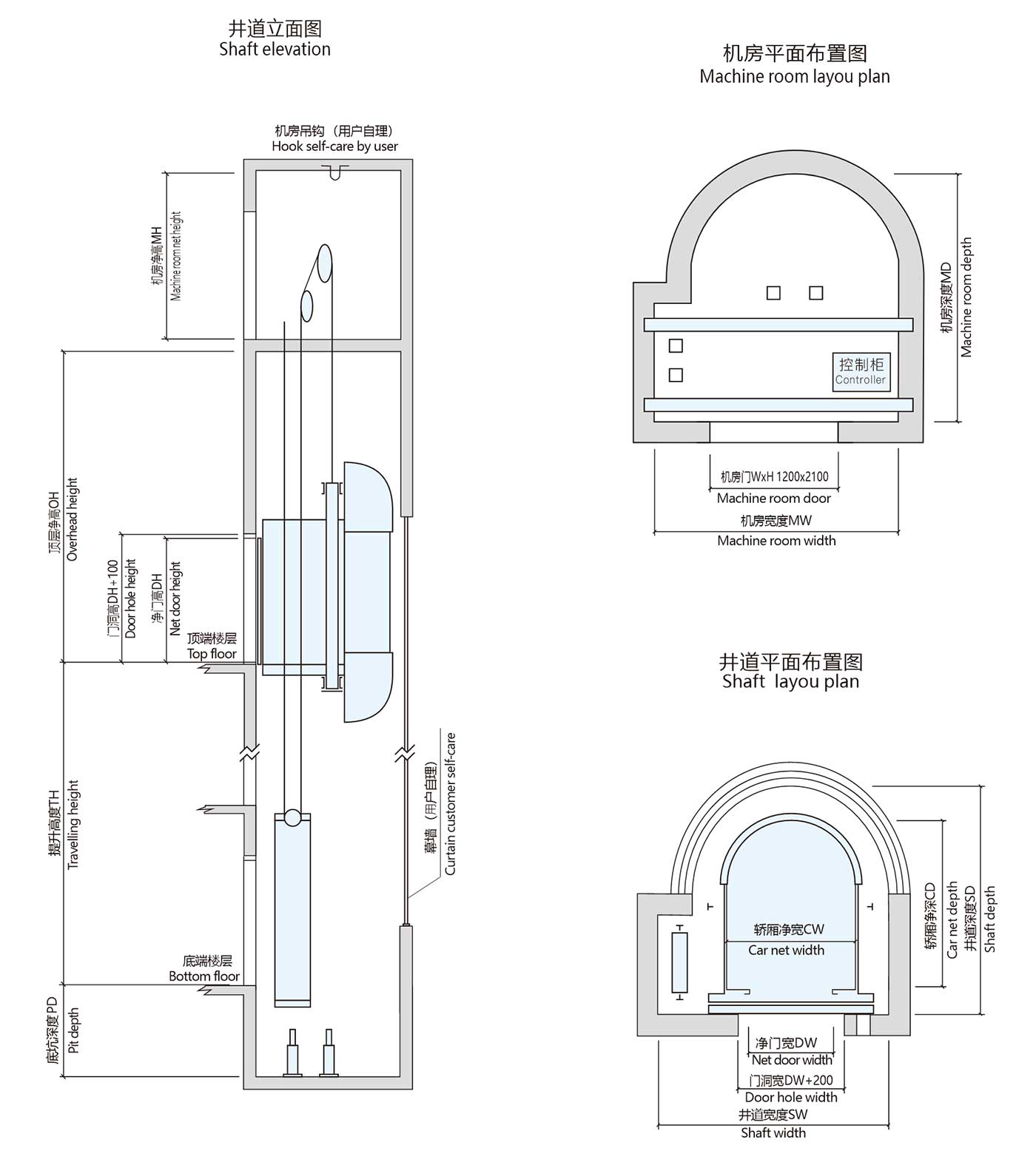 機房尺寸(mm) Machine room size |