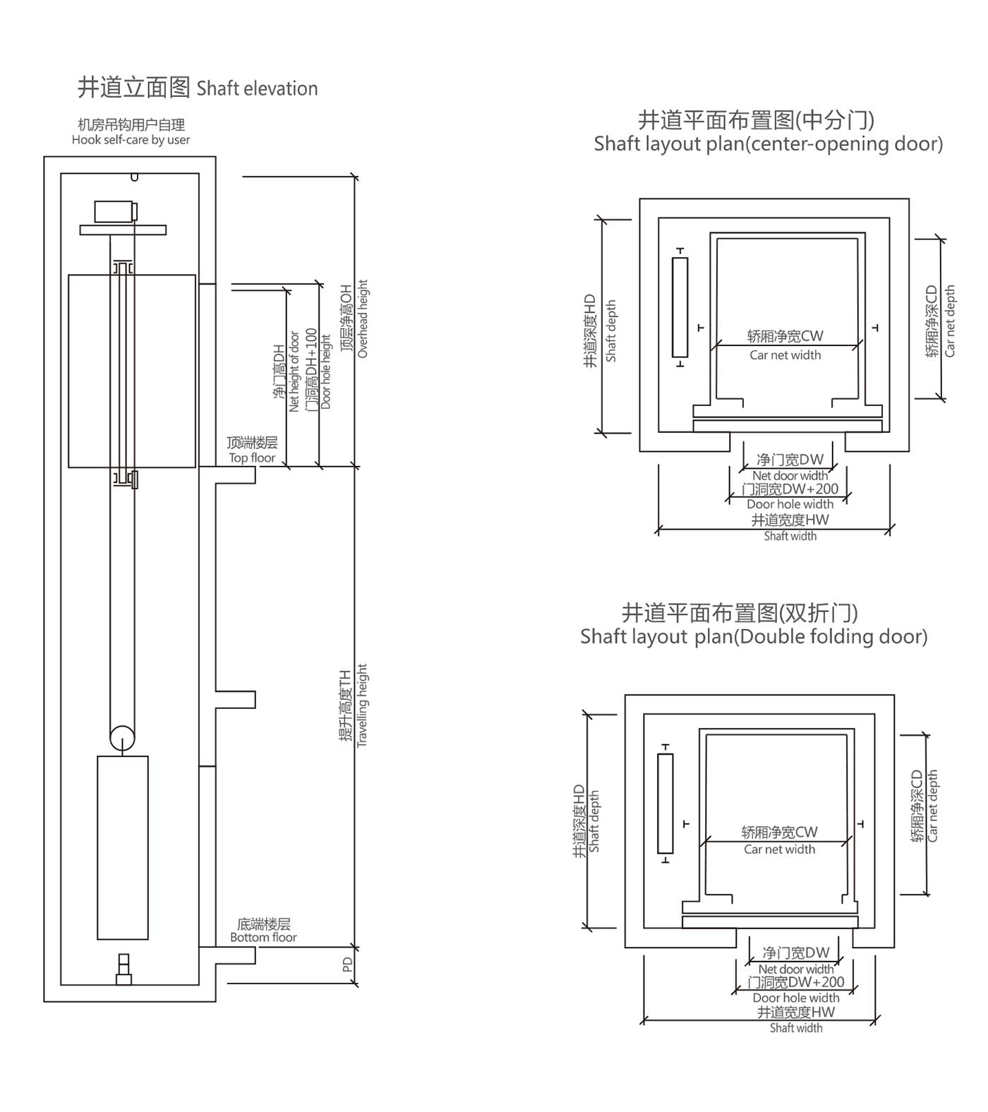 井道凈尺寸(mm) Hoistway size |