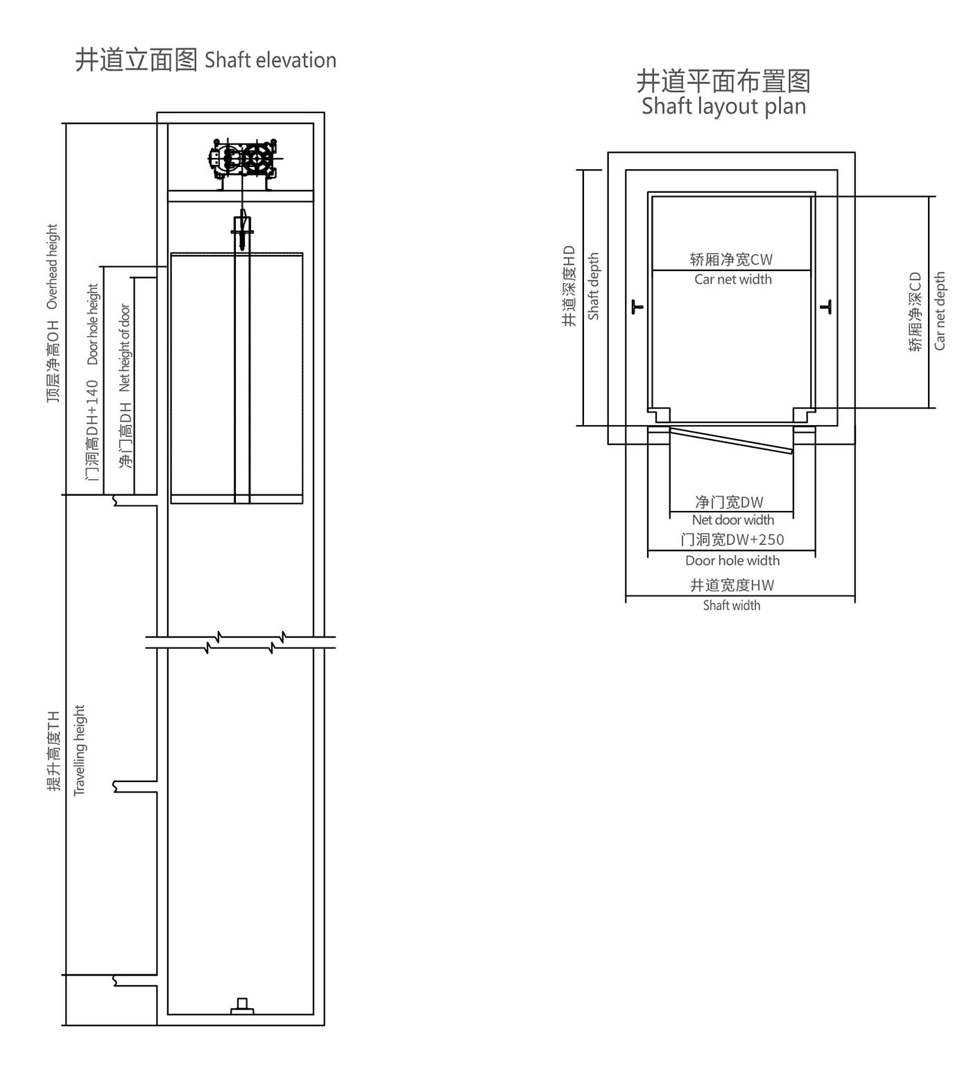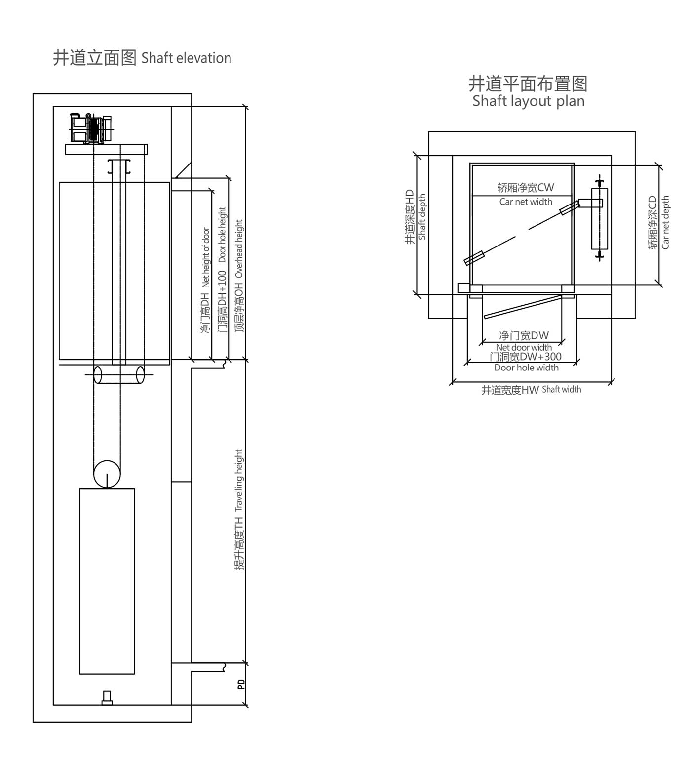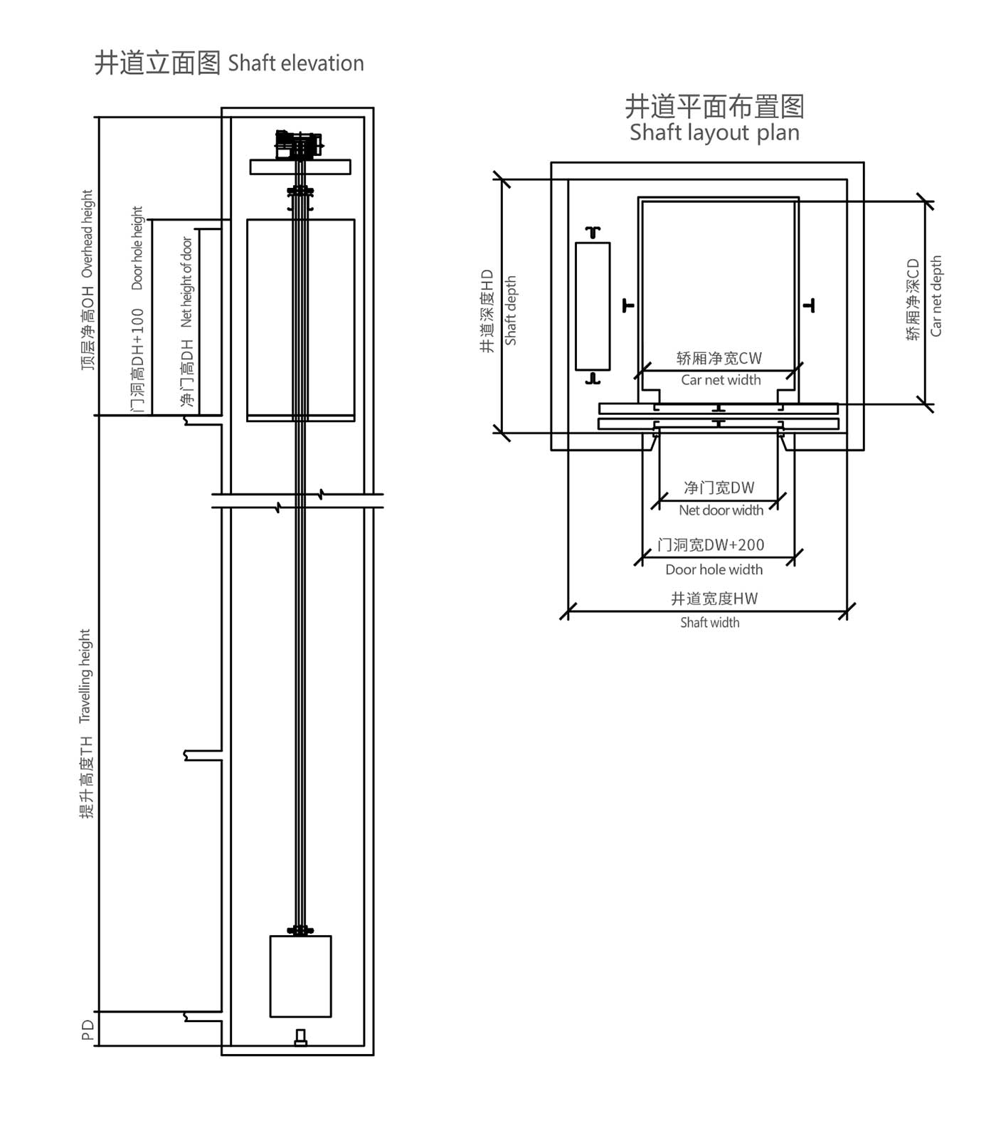 井道凈尺寸(mm) Hoistway size |