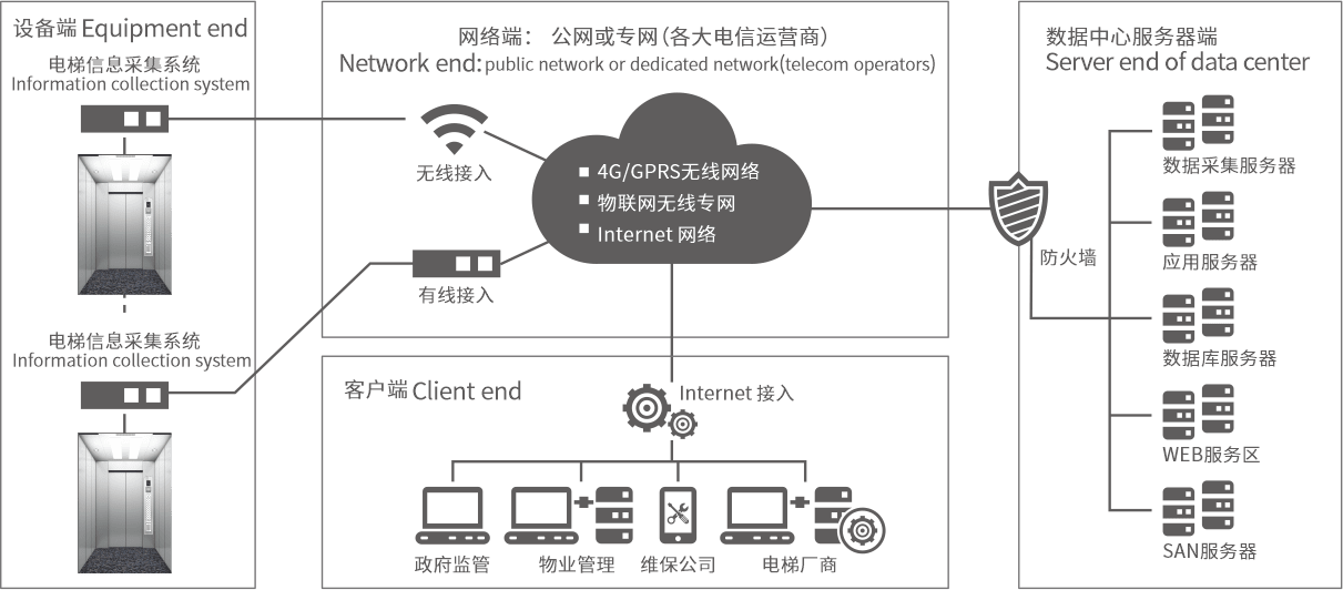 新馬電梯采用先進(jìn)傳感技術(shù)采集電梯實(shí)時(shí)運(yùn)行數(shù)據(jù),通過(guò)微處理器進(jìn)行數(shù)據(jù)分析、建模和建立故障專(zhuān)家?guī)欤捎肎PRS+GSM的通訊模式將數(shù)據(jù)傳輸?shù)奖O(jiān)視中心,實(shí)現(xiàn)電梯故障預(yù)警和報(bào)警、困人救援、日常管理、質(zhì)量評(píng)估、隱患防范、風(fēng)險(xiǎn)評(píng)估、對(duì)標(biāo)系統(tǒng)、節(jié)能技術(shù)開(kāi)展等功能的綜合性電梯管理平臺(tái)。
